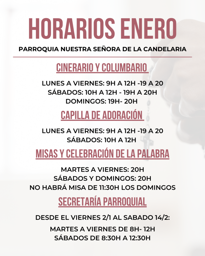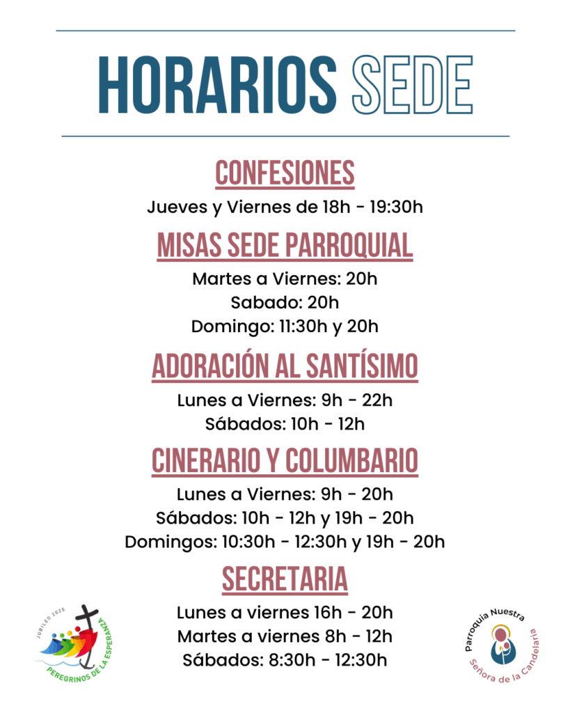 Para más información sobre grupos parroquiales, cinerario y columbario parroquial u otros trámites administrativos comunicarse con secretaría.